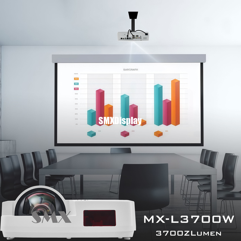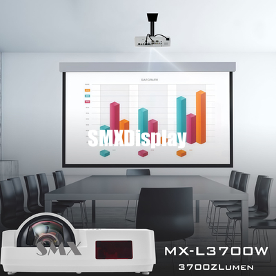 MX-L3700W একটি উচ্চ-উজ্জ্বলতার WXGA শর্ট-থ্রো প্রজেক্টর যা ব্যবসা এবং শিক্ষাগত সেটিংসের জন্য ডিজাইন করা হয়েছে। 3,700 ANSI লুমেন্সের একটি চিত্তাকর্ষক উজ্জ্বলতা সহ, এটি মিটিং রুম, ক্লাসরুম এবং অন্যান্য আলোকিত পরিবেশে পরিষ্কার ছবি সরবরাহ করে। এর 0.46 শর্ট-থ্রো অনুপাতের জন্য ধন্যবাদ, প্রজেক্টরটি মাত্র 0.79 মিটার দূর থেকে 80-ইঞ্চি স্ক্রিন তৈরি করতে পারে, যা ছায়া কমিয়ে দেয় এবং এমনকি সীমিত স্থানেও একটি বড় ডিসপ্লে করার অনুমতি দেয়।